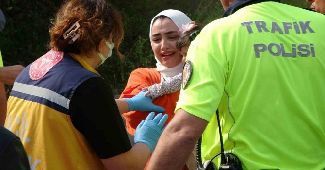 Kazanın ardından otomobilden çıkarılan araç sürücüsü, kucağındaki bebekle birlikte trafik ekiplerine olayı anlatırken gözyaşlarına hakim olamadığı gözlendi.