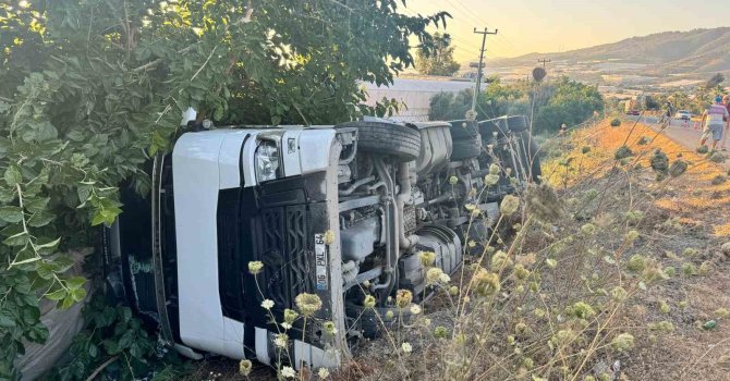 Antalya'nın Gazipaşa ilçesinde talaş yüklü tırın şarampole devrilmesi sonucu meydana gelen kazada, tır sürücüsü ve yanındaki yolcu yaralandı. Kaza sonrası talaşlar ise etrafa saçıldı.