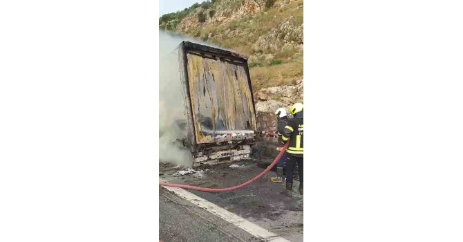 Alınan bilgiye göre C.E. yönetimindeki 33 AIK 735 çekici, 47 ABS 322 dorse plakalı cam plastik yükü bulunan tır da, otoyol Pozantı-Tarsus istikameti Taşobası mevkiinde, lastik patlaması nedeniyle dorse bölümünde yangın çıktı.