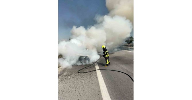 Mersin'de otoyolda seyir halindeki bir otomobil yandı.