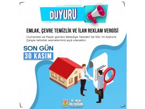Emlak, çevre temizlik, ilan ve reklam vergilerin 2021 yılı 2. taksitleri ödeme süresi 30 Kasım 2021 tarihinde sona ereceğini belirten Bozdoğan, "Vatandaşlarımızın cezalı duruma düşmesini istemiyoruz. Bu nedenle gerekli duyurularımızı yapıyoruz. Zamanında yapılan ödemeler halkımız ve belediyemizin lehine olacaktır. Ödenen her vergi vatandaşlarımıza hizmet olarak geri döneceğinden kimsenin şüphesi olmasın. Biz göreve gelirken