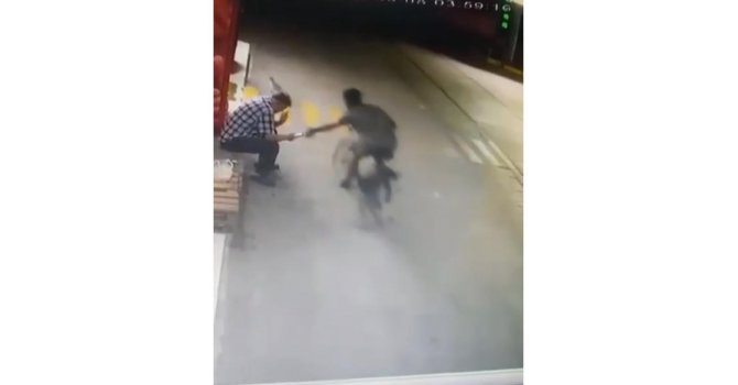 Adana'da akaryakıt istasyonunda bir kişinin cep telefonunun bisikletli zanlı tarafından alınması anbean görüntülendi.