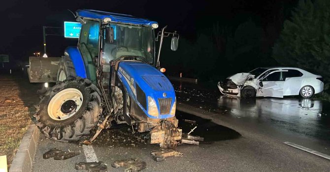 Kaza, saat 00.50 sıralarında Burdur'un Bucak ilçesi Burdur-Antalya karayolu Kızılkaya Kavşağı yakınlarında meydana geldi. Edinilen bilgilere göre Burdur'dan Antalya istikametine seyir halinde olan Murat E. (53) idaresindeki 34 KZ 8062 plakalı Citroen marka otomobil ile Kızılkaya Kavşağı'ndan ters şeride girerek ilerleyen Süleyman D. (56) idaresindeki 34 TB 5343 plakalı traktör çarpıştı. Kazada otomobil sürücüsü Murat E. ve aynı araçta yolcu olarak bulunan Aslıhan E. (49) yaralandı. Çevredekilerin 112 Acil Çağrı Merkezi'ne ihbarı üzerine olay yerine itfaiye, sağlık, jandarma ve polis ekipleri sevk edildi. Olay yerine gelen sağlık ekiplerinin ilk müdahalesinin ardından yaralılar ambulanslar ile Bucak Devlet Hastanesi'ne kaldırıldı. Yapılan alkol ölçümünde 2.75 promil alkollü olduğu tespit edilen traktör sürücüsü Süleyman D. ise jandarma ekipleri tarafından ifadesi alınmak üzere karakola götürüldü. Kazaya karışan araçlar çekici yardımıyla yoldan kaldırılırken hastanede tedavi altına alınan yaralıların hayati tehlikelerinin bulunmadığı öğrenildi. Kaza ile ilgili incelemeler sürüyor.