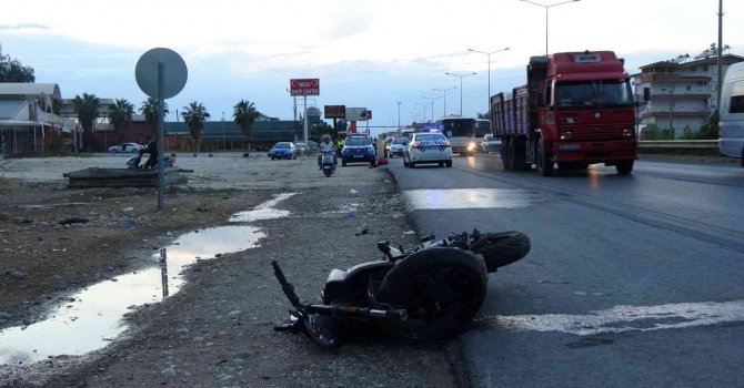 Antalya'nın Manavgat ilçesinde ters yönden gelen traktörün römorkuna çarpan motosikletin sürücüsü ağır yaralandı. Hastaneye kaldırılan motosiklet sürücüsünün hayati tehlikesinin bulunduğu öğrenildi.
