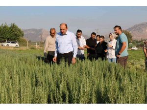 İl Müdürü Tekin, üretici İbrahim Yılmaz ile ölmez otu, biberiye, kekik, lavanta, tıbbi nane, melisa bulunan deneme tarlasındaki bitkileri inceleyerek yeni sezondaki üretimle ilgili bilgi aldı.