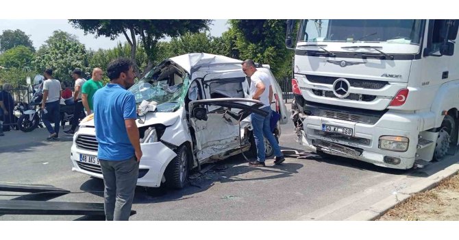 Mersin'in Tarsus ilçesinde tırın çarptığı otomobilde yaralanarak sıkışan sürücü itfaiye ekipleri tarafından kurtarıldı.