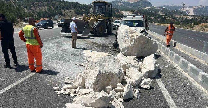 Isparta'da seyir halindeki tırdan düşen mermer bloğuna çarpan otomobildeki sürücü yaralandı. Yaralanan kadın hastaneye kaldırıldı.