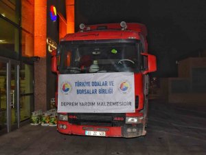 Türkiye Odalar ve Borsalar Birliğinin (TOBB), deprem bölgelerinde yaraları sarmak için AFAD koordinasyonunda başlattığı yardım kampanyası çerçevesinde 365 oda ve borsa, yapılan ayni yardımlar ve iş makinelerini, tırlarla deprem bölgesine sevk etti.