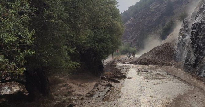 Kahramanmaraş'ta şiddetli yağış sonrası toprak kayması meydana gelen ve ulaşıma kapanan yol, temizlenerek yeniden açıldı.