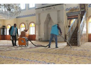 Mersin'in merkez ilçe Toroslar Belediyesinden yapılan açıklamaya göre, belediyenin ibadethane temizlik ve dezenfektan ekibi, ilçedeki tüm ibadethanelerin iç ve dış mekanlarını titizlikle temizliyor. İbadethanelerdeki halılar, halı yıkama makinesiyle yerinde yıkanırken; avlu, tuvalet, kapı kolları ve ayakkabılık gibi temasın olabileceği tüm yüzeyler dezenfekte ediliyor.