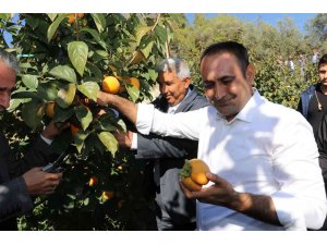 Başkan Yılmaz, daha sonra ilçe protokolü ve çiftçilerle birlikte hurma bahçesine giderek ağacından hurma hasadı yaptı, üreticilerden paketleme ve sevk işlemleri ile ilgili bilgiler de aldı.