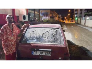 Antalya'nın Aksu ilçesinde yaşayan, 4 yaşından bu yana resim yapan işitme engelli ressam Alper Kocabıyık, alışılmışın dışında bir tuval kullanıyor. Kocabıyık, tozlu araçların camlarını adeta sanat eserine dönüştürüyor.