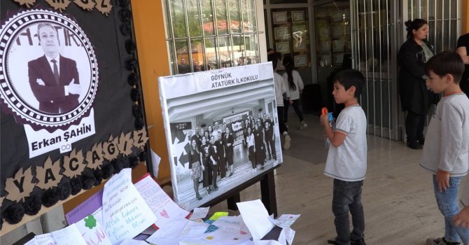 Anma töreninde öğretmenler ve arkadaşları Erkan Şahin için çiçek bıraktı. Öğrencilerin okul müdürleri için yaptığı resimler ve yazdıkları duygu dolu notlar da okul önünde sergilendi.
