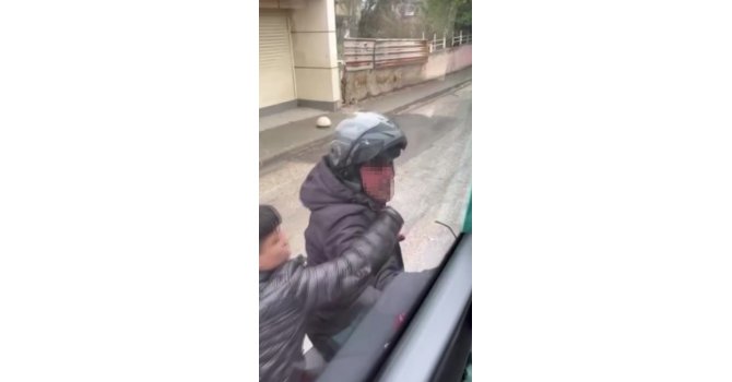 Adana'da trafikte yol verme meselesi yüzünden çıkan tartışmada motosiklet sürücüsü, kaskıyla servis aracının camını kırdı. O anlar cep telefonu kamerasına yansıdı.