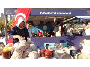 Adana'nın Tufanbeyli ilçesinde üretilen ve bu yıl coğrafi işaret alarak lezzeti tescillenen Tufanbeyli fasulyesi ve bakliyat ürünleri festival katılımcılarından tam not aldı.