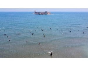 Kızkalesi manzarasında denize girip sahilde top oynadıklarını belirten gençler de okullarının tatilde olduğu için güzel vakit geçirmeye çalıştıklarını kaydetti.