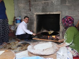 Geçtiğimiz günlerde hasat öncesi tarlaları yanan Döşemealtı köylerindeki çiftçileri tek tek ziyaret eden Başkan Tütüncü, mahalle sakinleriyle de bir araya geldi. Yanındaki bürokratları ile beraber mahalle sakinleriyle sohbet etti, ikram edilen çay ve kahveleri içti. Kovanlık Mahallesi ziyaretinde de gözleme pişiren kadınların yanına giderek, “Bereketli olsun anneler, ablalar” dedi. Hal hatır soran Tütüncü, “Ablalarıma biraz da ben yardım edeyim” diyerek, aldı eline döndürgeci, geçti odun ateşinin başına sacda gözleme pişirdi. Başkan Tütüncü, gözlemeleri pişirirken de oluyor değil mi? diye sormayı da ihmal etmedi. Köylü kadınların açtığı gözlemeleri uzun süre pişiren Tütüncü, tekrar “Anneler, ablalar bereketli olsun.” diyerek, ayrıldı.