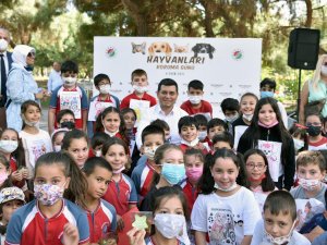 Çocuklar etkinlikte, göğüslerine astıkları resimlerle, ellerinde taşıdıkları pankartlarla ve yazdıkları şiirle sokak hayvanlarının korunmasına ve sevilmelerine yönelik mesajlar verdi.