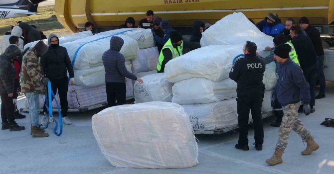 Uşak'tan 12 bin battaniye Sahil Güvenlik ve Kara Kuvvetleri uçaklarıyla Adana'ya gönderildi.