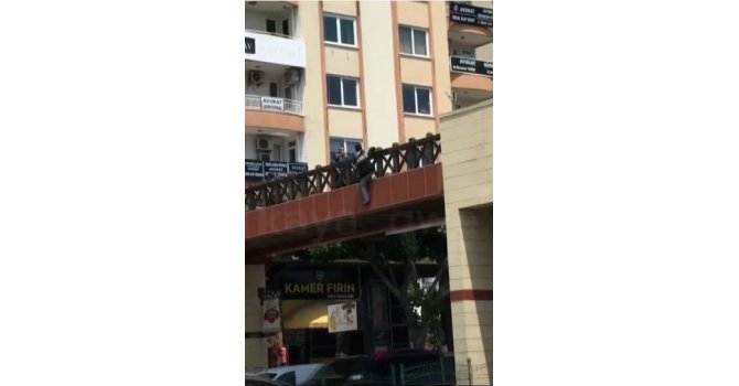 Antalya'da yaya üst geçidinde intihar girişiminde bulunan genç, korkulukların diğer tarafına geçmeye çalışırken polis ekiplerince güçlükle alınıp güvenli alana çekildi.