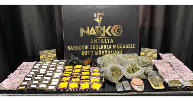 İl Emniyet Müdürlüğü Narkotik Suçlarla Mücadele Şube Müdürlüğü koordinesinde yürütülen çalışmalarda çok sayıda uyuşturucu madde ve suç unsuru ele geçirildi. Antalya genelinde gerçekleştirilen operasyonlarda "Uyuşturucu veya Uyarıcı Madde Ticareti Yapmak ve Sağlamak" suçundan 30 ayrı olayda 37 şüpheli yakalanırken, adli işlemler sonucunda 20 kişi tutuklandı. "Kullanmak İçin Uyuşturucu veya Uyarıcı Madde Satın Almak, Kabul Etmek ve Bulundurmak" suçundan ise 231 olayda 242 şüpheli gözaltına alındı.