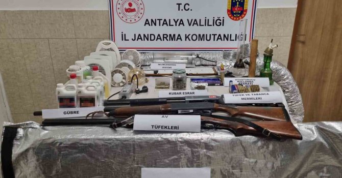 Antalya Jandarma Komutanlığı ekiplerinin uyuşturucu madde imalatı ve ticaretine yönelik sürdürdüğü operasyonlarda 3 adet av tüfeği ve 27 gram kubar esrar maddesinin ele geçirildiği belirtildi.
