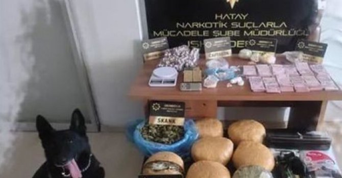 Hatay İl Emniyet Müdürlüğü uyuşturucu imal ve ticareti suçuna yönelik mücadeleyi aralıksız sürdürüyor. İl Emniyet Müdürlüğü'nden alınan bilgilere göre, İskenderun ilçesinde uyuşturucu imal ve ticareti suçlamasıyla 6 adrese eş zamanlı operasyon düzenlendi. Yapılan aramalarda, 10 kilo 764 gram esrar, 39 gram sentetik uyuşturucu, 2 bin 870 uyuşturucu hap, 100 fişek, bir tüfek ve uyuşturucudan elde edildiği değerlendirilen 250 bin lira ele geçirildi. Gözaltına alınan S.S., B.Ç., F.B., A.E., Ö.Y. ve E.Ş.'nin emniyetteki işlemleri devam ediyor.