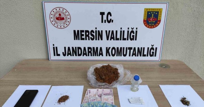 Mersin'de jandarma ekipleri uyuşturucu madde ticareti yapan bir şüpheliyi tespit edip yakaladı.