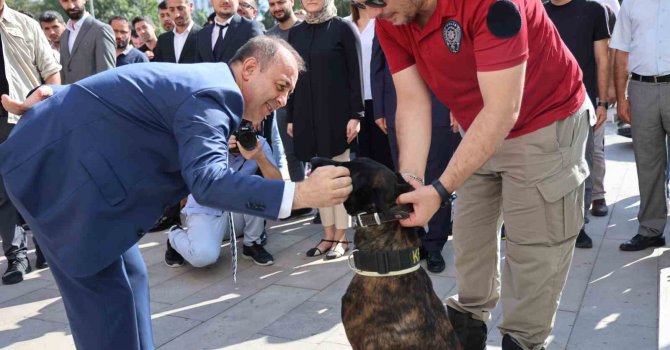 Ardından Arıkan, narkotik dedektör köpeği Barbara ve Aşil'i sevdi.