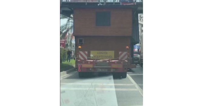 Antalya'nın Alanya ilçesinde üzerinde taşınabilir ahşap ev bulunan bir tır, üst geçidin altından geçtiği esnada sıkıştı. Sıkışan tırın sürücüsü bir süre sonra aracı tekrar hareket ettirdi.