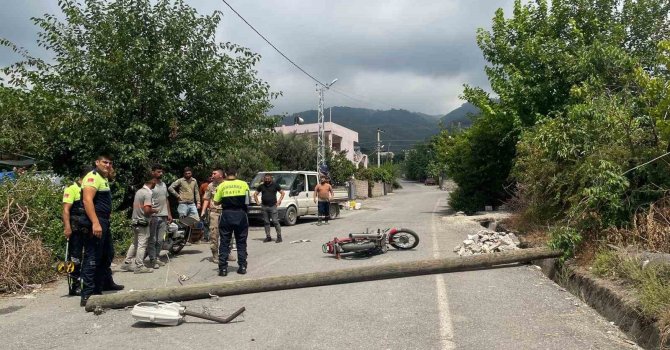 Hatay'ın Dörtyol ilçesinde üzerine elektrik direği devrilen şahıs yaralandı.