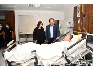 Mezitli Polisevi nizamiye noktasına düzenlenen saldırıda, bölücü terör örgütü mensubu hain teröristler ile girilen çatışmada yaralanan polis memuru Abdulkadir Öztürk'ün tedavisi, Mersin Üniversitesi Tıp Fakültesi Hastanesinde sürüyor. Mersin Valisi Ali Hamza Pehlivan da eşi Yıldız Pehlivan ile birlikte yaralı polis memurunu, tedavi gördüğü hastanede ziyaret etti. Polis memuru Abdulkadir Öztürk'ün durumu hakkında hastane yetkililerinden bilgi alan Pehlivan, kendisine ve ailesine geçmiş olsun dileklerini iletti.