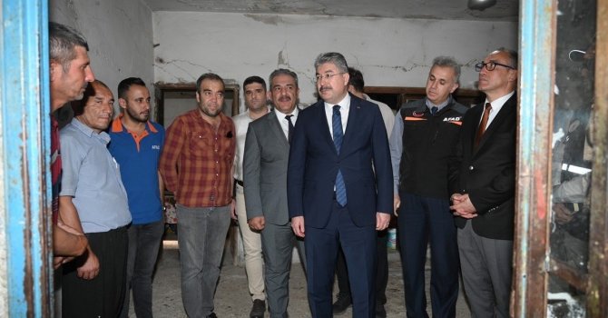 Osmaniye'de 5.1 büyüklüğünde meydana gelen depremde hasar gören evlerde incelemelerde bulunan Vali Erdinç Yılmaz, ailelere geçmiş olsun dileklerini iletti.