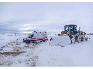 Yolu kardan kapanan Erciş ilçesi Tırmıklı Mahallesi'nde doğum sancıları tutan bir kadın da sağlık ekiplerinin kontrolünde evinden alınarak hastane götürüldü.