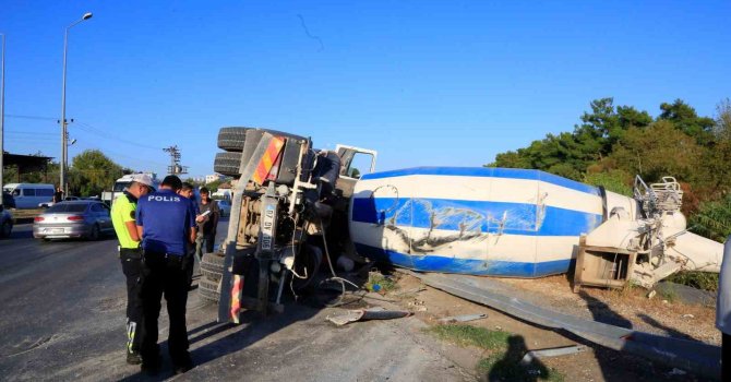 Antalya'da virajı alamayan beton mikseri yan yattı. Araçta sıkışan sürücü itfaiye ekipleri tarafından bulunduğu yerden çıkartılarak hastaneye kaldırıldı.