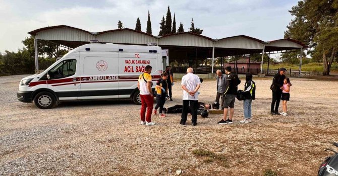 Antalya'nın Manavgat ilçesinde seyir halindeki motosikletin kaldırıma çarparak boş arsaya devrilmesi sonucu meydana gelen kazada 1 kişi yaralandı.