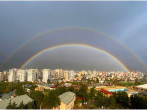 Meteorolojinin uyardığı yağışlı hava bir çok ilde olduğu gibi Adana'da da yer yer etkili oluyor. Kozan ilçesinde etkili olan yağmur sonrası gökyüzün de çifte gökkuşağı oluştu. Vatandaşlar gökkuşağını cep telefonları ile kayda alırken oluşan renk cümbüşü mest etti.