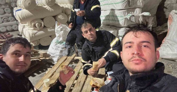 Kahramanmaraş'ta meyana gelen iki farklı yangına giden itfaiye ekipleri iftarını olay yerinde yaptı.