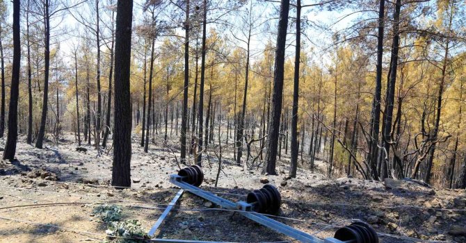 Antalya'nın Serik İlçesine bağlı Yumaklar Mahallesi Koca Mehmetler mevkiinde dün öğlen saatlerinde elektrik direğinin devrilmesi sonucu çıkan ve geniş bir alanı etkileyen yangında soğutma çalışmaları sürüyor. 43 arazöz, 16 ilk müdahale aracı, 10 su ikmal aracı, 4 dozer, 22 hizmet aracı ve çok sayıda orman işçisi ile müdahale edilen yangın nedeniyle 30 evde boşaltılmıştı. Yangın nedeniyle bazı sera ve evler zarar görürken yetkililerin bölgede zarar tespit çalışmaları da başladı. Yangının ilk çıktığı noktada ise elektrik direklerinin küle döndüğü görüldü. Direklerden geriye üst kısımlarında bulunan demir parçalar ve porselen izolatörler kaldı.