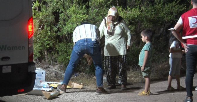 Antalya'nın Serik ilçesinde kısmen kontrol altına alınan orman yangınında evlerinden tahliye edilen bazı vatandaşlar geceyi çocukları ile birlikte evlerinin yakınına park ettikleri araçlarının içerisinde geçirdi.