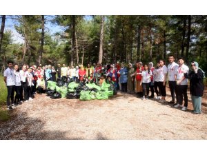 Osmaniye'de daha yaşanılabilir bir gelecek için yeşilin korunabilmesi ve orman yangınlarının önüne geçebilmek amacıyla ormanlık alandan 500 kilogram cam şişe ve çöp toplandı.