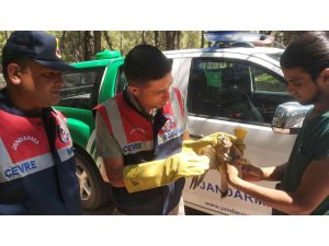 Antalya'da jandarma ekiplerinin devriyesi esnasında bulunan yaralı kerkenez, koruma altına alınarak tedavisi için hayvanat bahçesine teslim edildi.