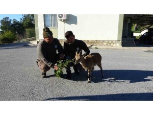 Gündoğmuş ilçesinde bulunup Manavgat Köprülü Kanyon Doğa Koruma ve Milli Parklar Şefliğinde koruma altına alınan dağ keçisi yavrusuna bakıcılar özenle besliyor.