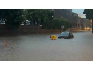 Osmaniye'de sağanak yolları göle çevirirken, araçlar da suya gömüldü.