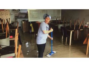 Adana'nın Tufanbeyli ilçesinde yağmur nedeniyle bazı iş yeri ve evleri su basarken, anne ve iki çocuğu sele yemek yerken restoranda yakalandı.