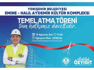 Belediye Başkanı Abdullah Özyiğit, vatandaşları, Eğriçam Mahallesi 22138 Sokak'ta inşa edilecek Emine-Halil Aydemir Kültür Kompleksi'nin yarın saat 17.00'de düzenlenecek temel atma törenine davet etti.