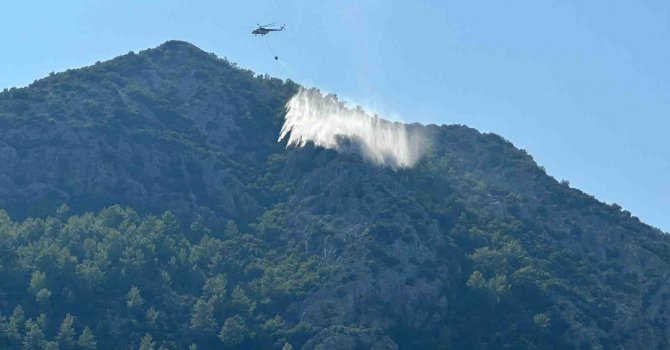 Antalya'nın Gazipaşa ilçesinde yıldırım düşmesi sonucu meydana gelen orman yangını, helikopterle yapılan müdahale sonucunda kontrol altına alındı.