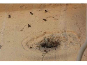 Hatay'da 2 katlı binanın giriş katındaki duvarda bulunan delikten içeri girerek yuva yapan bal arılarını, yuvaya taş atan çocuklar kızdırdı. Kısa süreliğine kızgınlaşan ve kalabalık şekilde uçuşan arılar mahalleliyi tedirgin etti.