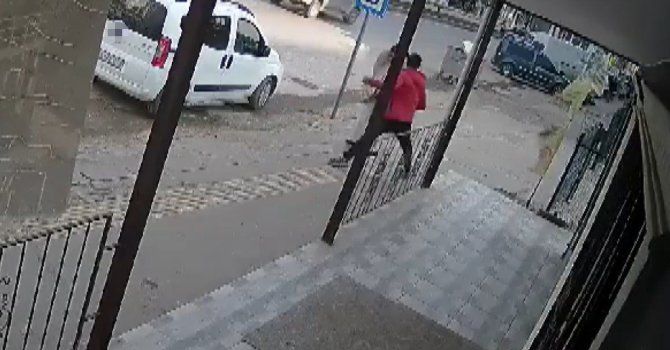 Kahramanmaraş'ın Pazarcık ilçesinde yolda yürüyen kadına saldırı anı güvenlik kamerasına yansıdı.