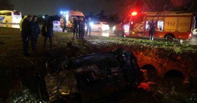 Antalya'da yağmur nedeniyle kayganlaşan yolda kontrolden çıkan lüks otomobil, refüjdeki su kanalının bulunduğu çukura düştü, kazada 3 kişi yaralandı. Yaralıların ıslanmaması için vatandaşlar şemsiyelerle siper oldu.